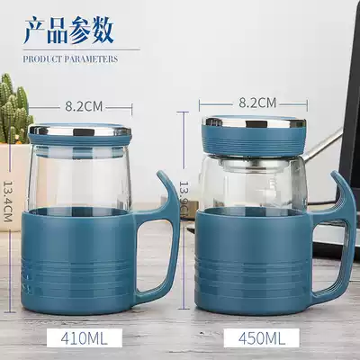 Fulight glass Men's office water cup with handle portable heat-resistant filter tea cup large capacity Cup