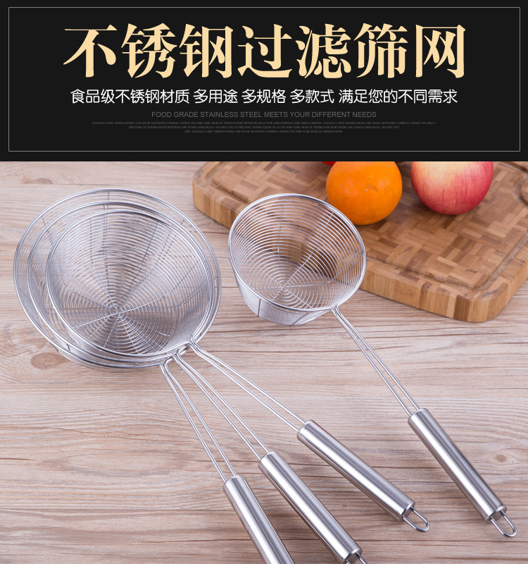 Stainless steel large colander mix noodles spoon household fried dumpling noodles scallop spicy hot filter mesh sieve spoon