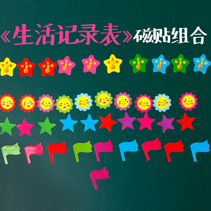 (Magnets)Tangram Children's life record Large magnet set Smiley face flag star drawing board accessories