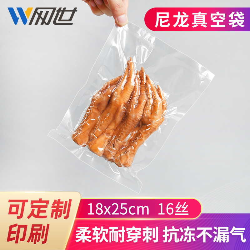 Nylon commercial glossy food vacuum packaging bag 18*25*16 silk chicken leg cooked food preservation bag 100pcs