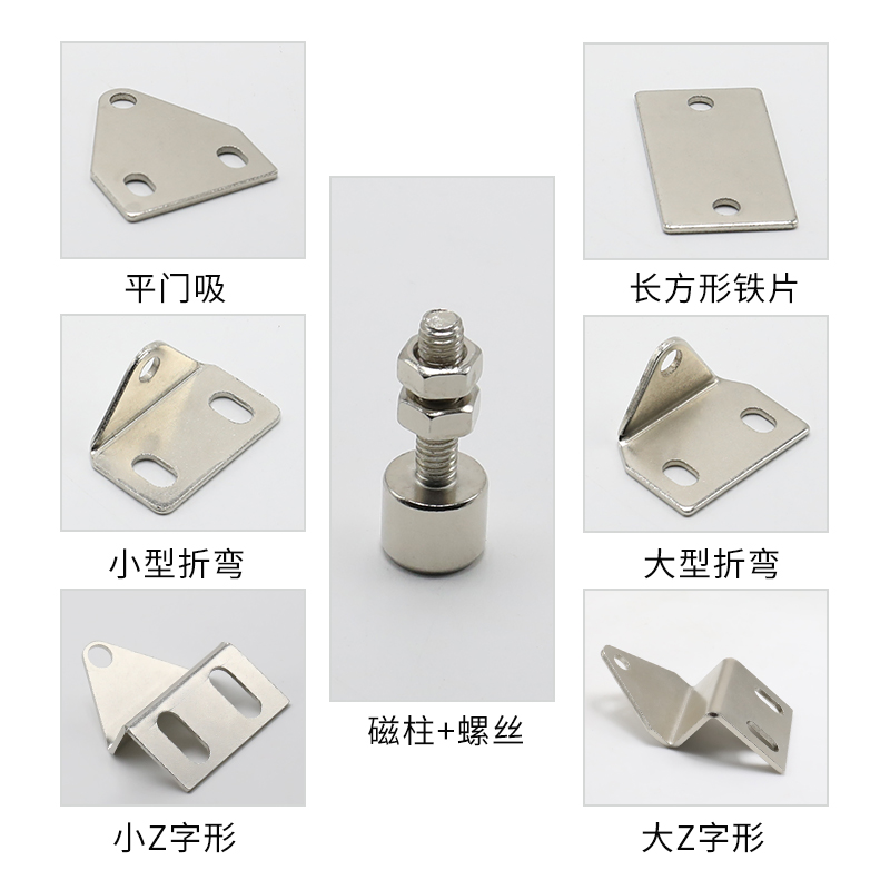 Triangle Doors Suck (flat) Set of small bends A set of large bends a set of small heads magnetic column nuts large head magnetic column nuts (with red caps) triangular pieces (flat) small bending pieces big bending pieces rectangular iron sheet small