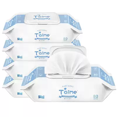 Taime baby wipes Newborn baby hand and mouth special fart wet tissue 80 pumping 5 family affordable large package