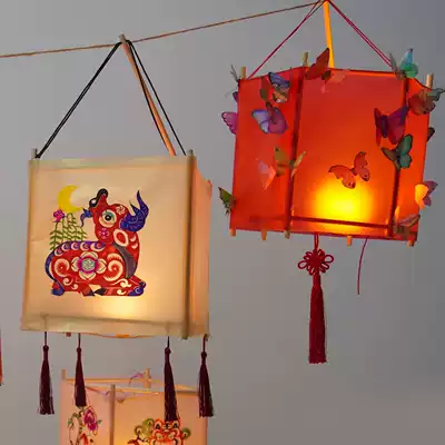 Mid-Autumn Festival traditional square children's handmade diy portable lantern Spring Festival paper-cut lantern palace lantern making material package