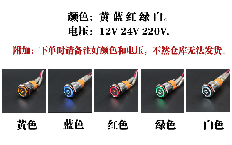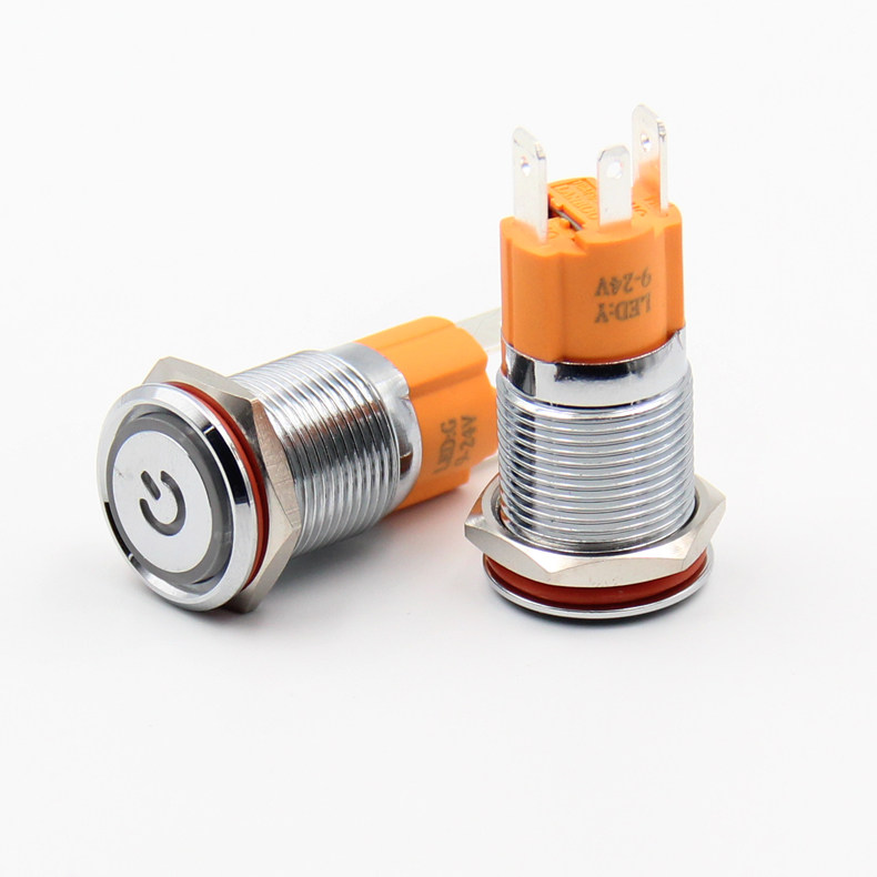 16MM metal self-lock start stop waterproof button switch LED light ring with power symbol large current 10a