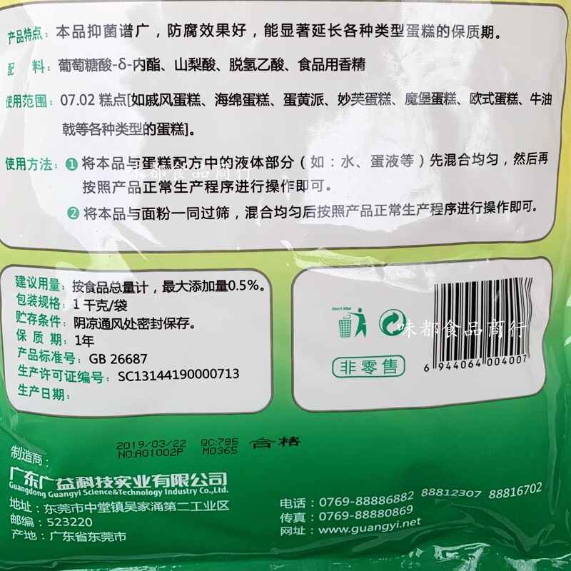 Wide and beneficial rematch preservative (cake used) wide and beneficial refit preservative (bread used)