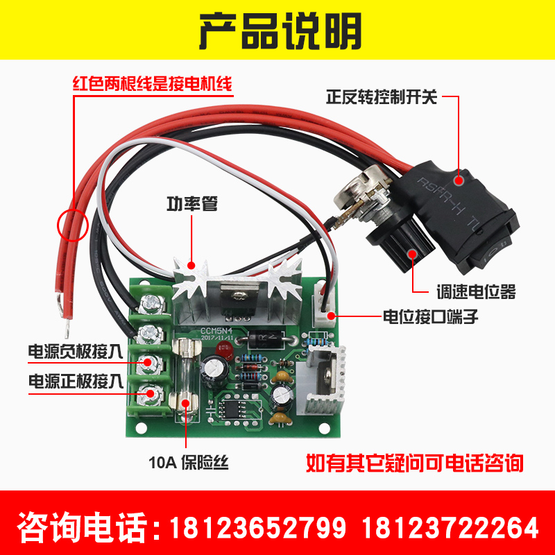 10A DC motor governor 12V24V stepless speed regulation bidirectional positive and negative DC controller switch