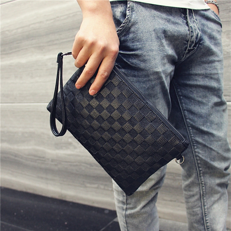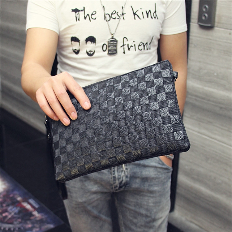 Day Ensemble Handbags Male Korean version Tide Cards Plaid Handbags Men And Women Casual Soft Leather Fashion Hand Carry Bag Clips Hand Grip Bag