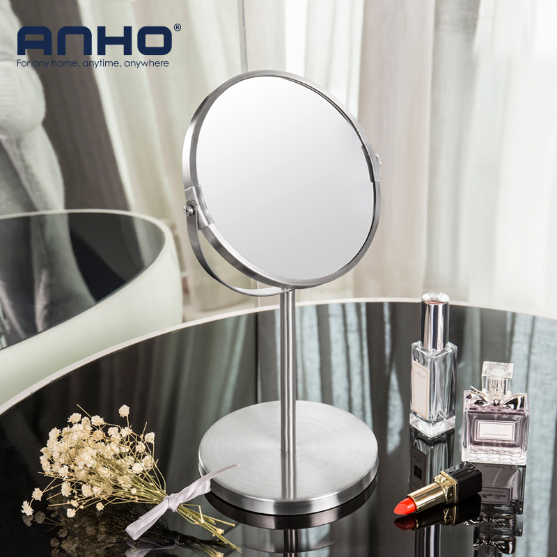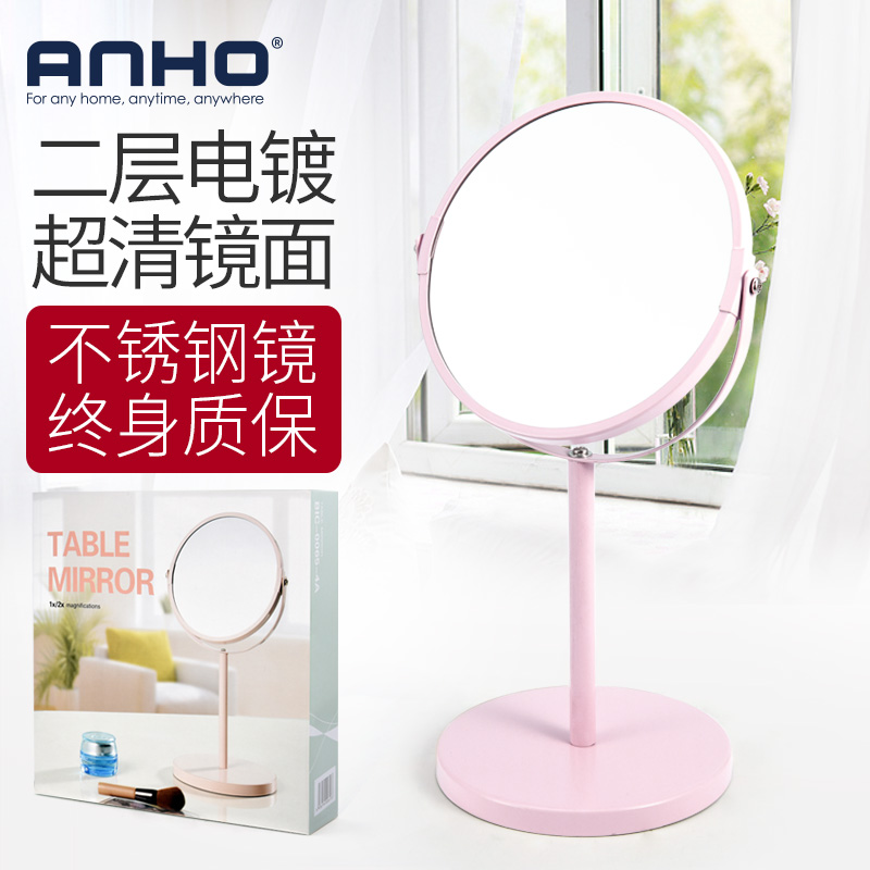 ANYO makeup mirror Desktop portable portable with mirror Simple large round double-sided mirror Dormitory desktop princess mirror