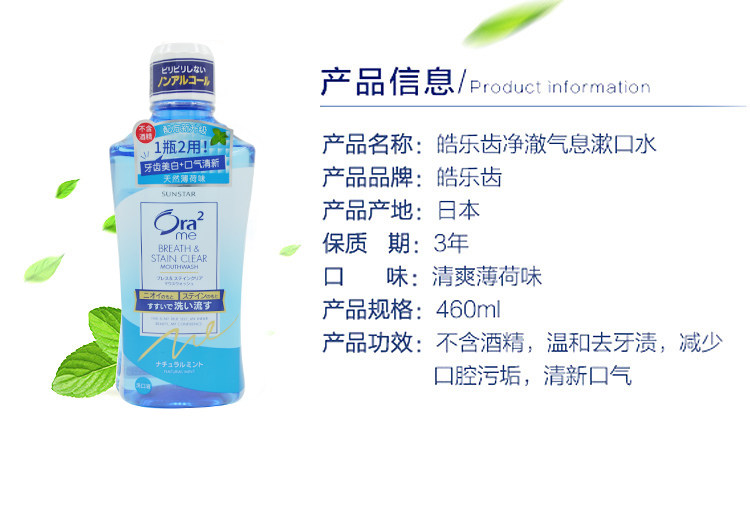 Japanese original dress Ora2 Hole teeth mouthwash cool mint No alcohol 460ml mild and bacteriostatic breath