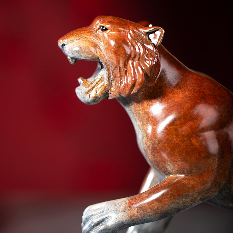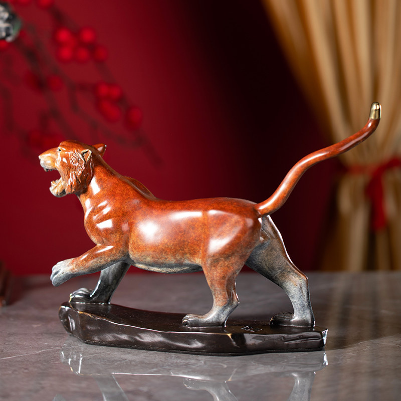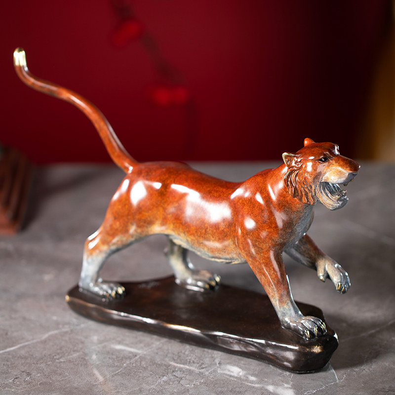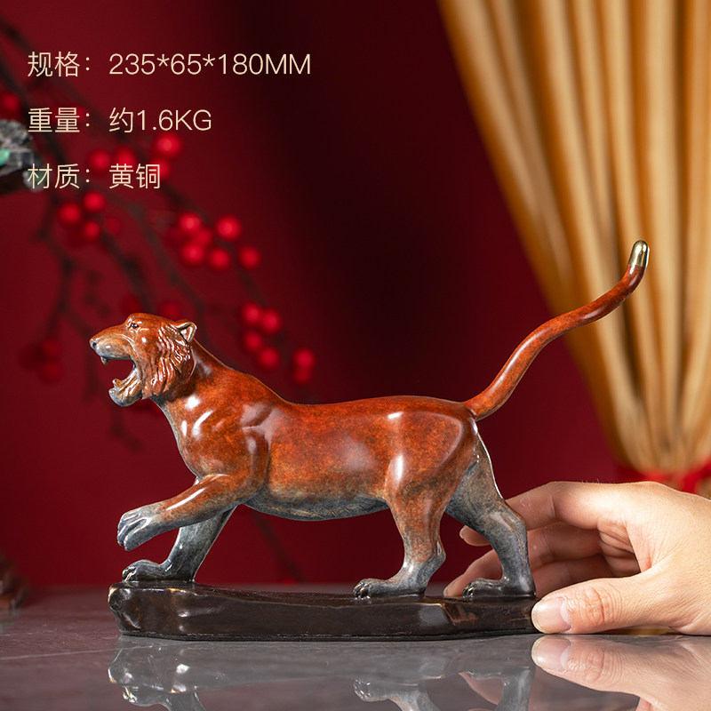 Zhu Bingren copper zodiac animal color golden tiger Shengwei copper carving tiger ornaments Copper craft gift ornaments Office desk ornaments