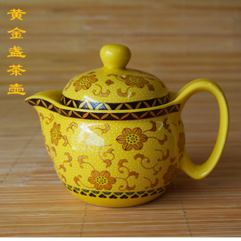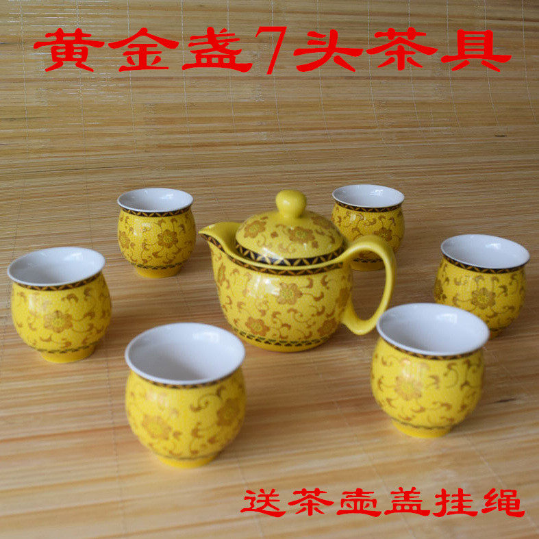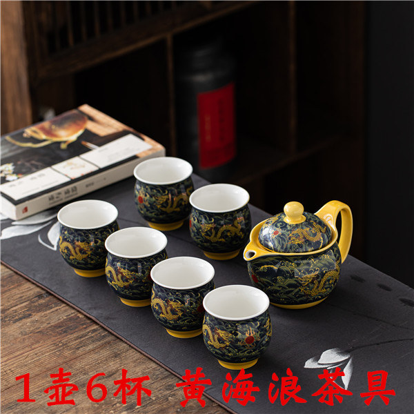 7 heads of yellow sea wave double-layer cup tea set 1 pot of 6 cups Huang Hailang personalized tea set of 7 heads golden cup 1 pot of 6 cups tea set of 7 heads of golden double-layer cup tea set of 7 yellow leaves