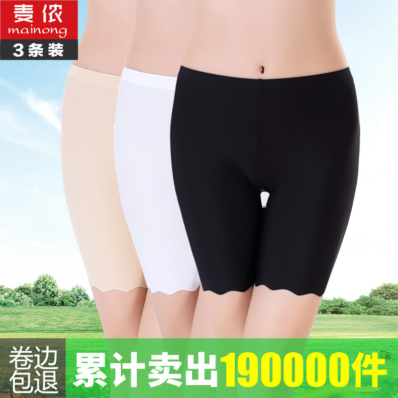 Safety pants Women's anti-light no roll edge can be worn outside the summer thin ice silk without trace Large size five-point high waist insurance inner pants
