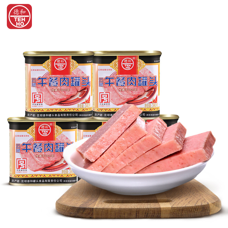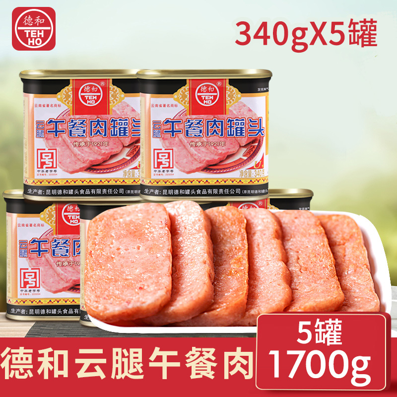 Yunnan Dehe Xuanwei canned ham luncheon meat 340g*5 cans of canned ham ready-to-eat sliced raw barbecue sausage filling
