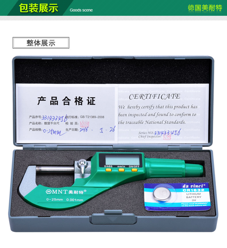 High precision outer diameter digital display micrometer high precision 0001 electronic card ruler 0-25mm spiral micrometer calliper caliper