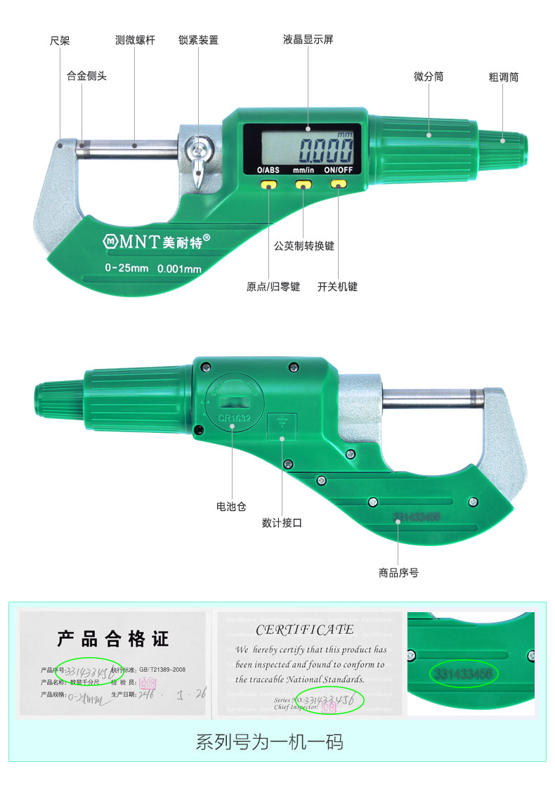 Digital display micrometer 0-25mm mechanical digital display dual-use micrometer 0-25mm