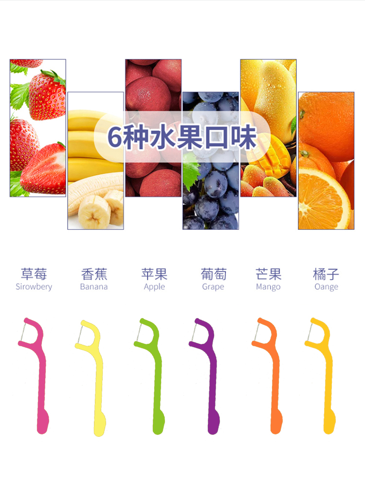 Japanese Flossy Children's Baby Special Floss Rod Ultra Fine Teeth 6 Fruits Taste Independent Fit 60