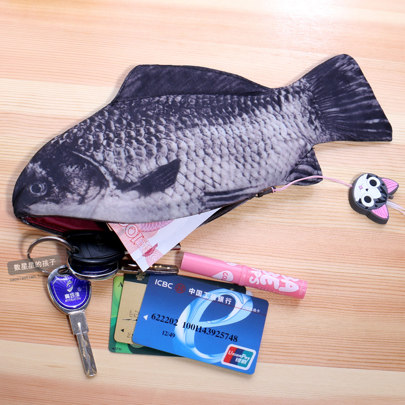 Han Edition Creative Emulation Crucian Fish Salted male and female pen bags Blame Fish Shaped Stationery Bag Zero Wallet Mobile Phone Bag Children