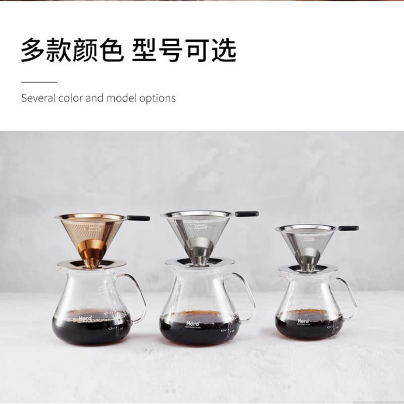 hero hand punch coffee filter ultra-fine encrypted household stainless steel filter pot drip funnel filter paper