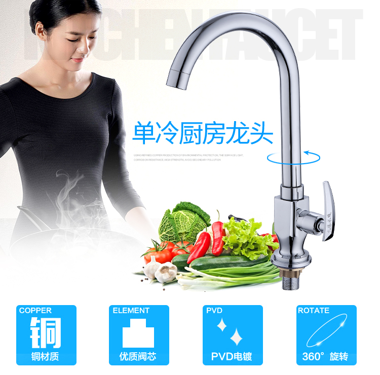 All-copper activity single cold wash dish wash basin faucet on the table Taichung basin Ceramic basin Single cold kitchen faucet