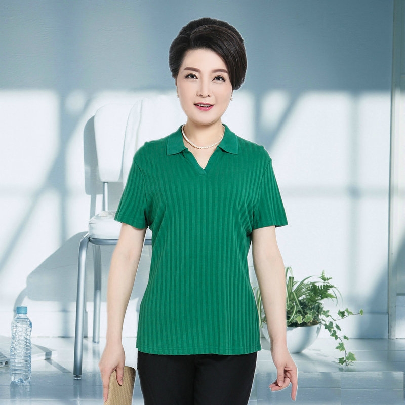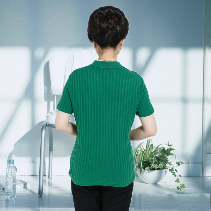 (clear cabin) mid-aged large size short sleeve t-shirt female summer clothing mom loaded collar pure cotton loose half sleeve blouse