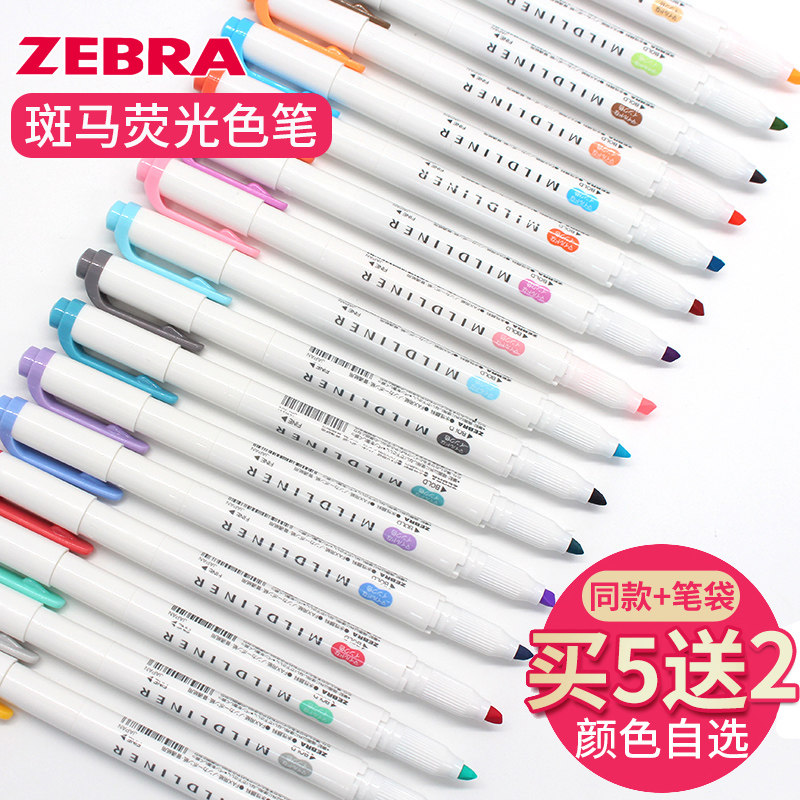 Japan's ZEBRA zebra double-headed highlighter light-colored student key marker pen color hand account mark WKT7