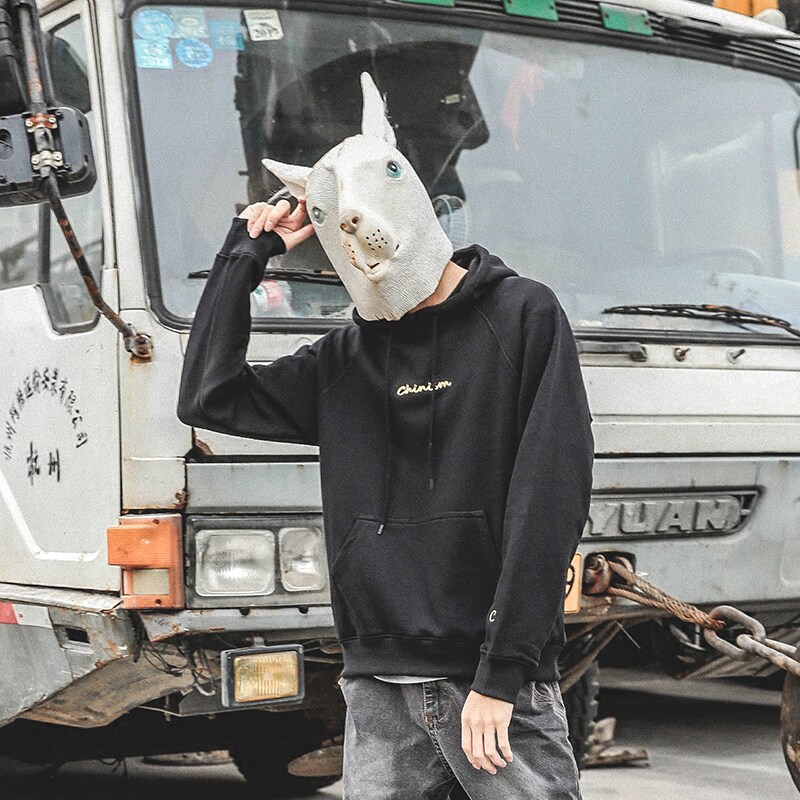 LMTNZD 20 Japanese black hooded sweater men's spring and summer letters loose casual tide brand pullover hoodie