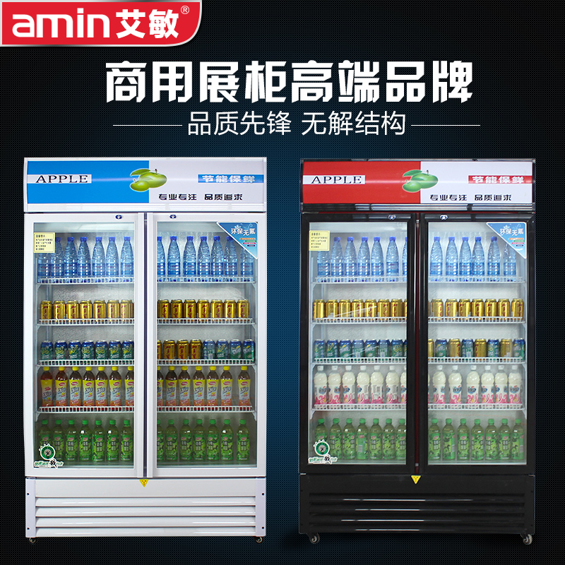Ai Min Display Cabinet Refrigerated Cabinet Vertical Commercial Ice Cabinet Fridge Beer Drinks Freshness Cabinet Double Door Single Door Beverage Cabinet