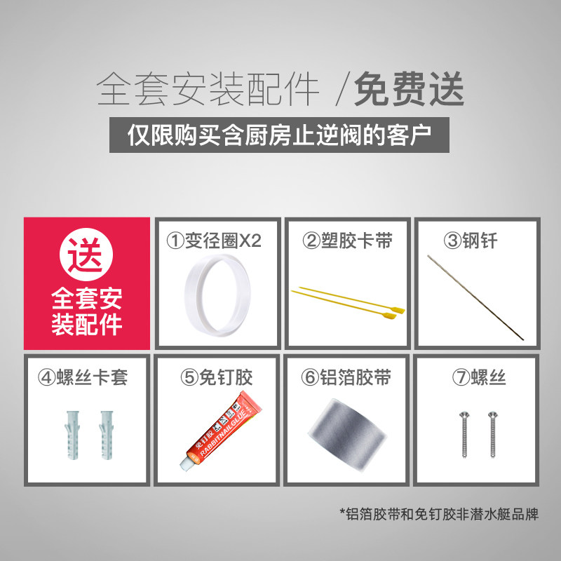 (Package 1)Kitchen check valve standard version (Package 2) One kitchen and one bathroom (Package 3)One kitchen and two bathrooms (Package 4) Kitchen check valve 2 meters smoke pipe (Package 5)One kitchen and one bathroom