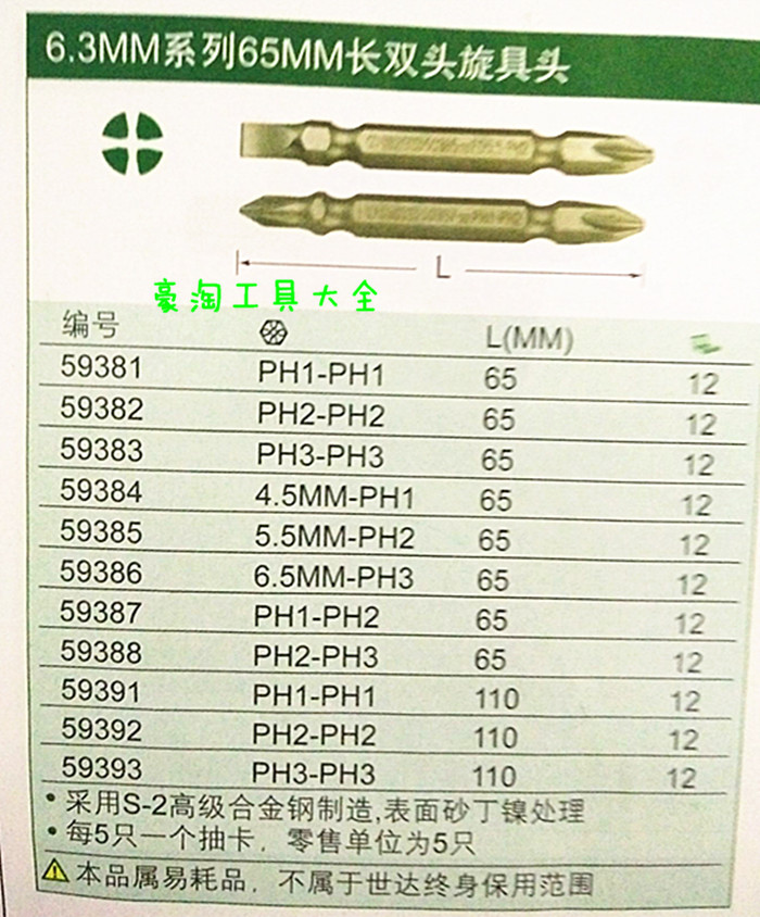 Seda Five gold tools 5 pieces 6 3MM series long double head screwup head batch head 65MM-110MM59381