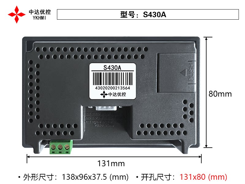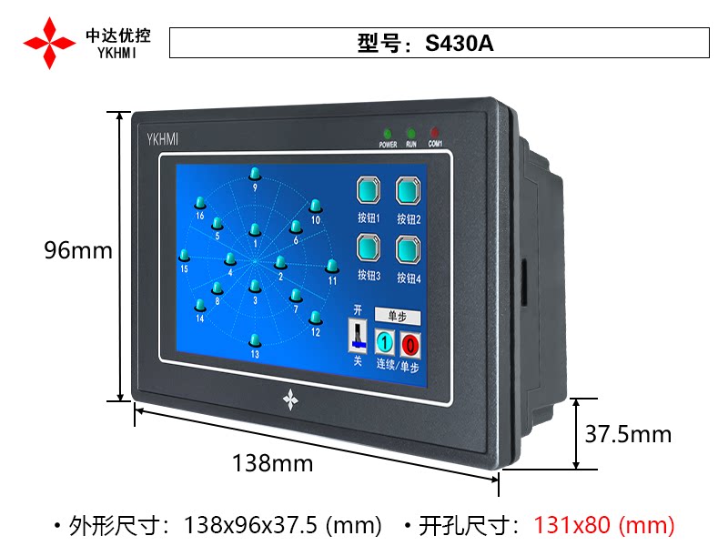 Zhongda excellent control 4 3 inch S430A touch screen color configuration human-machine interface YKHMI supports modbus RUT