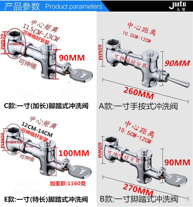 All copper horizontal retractable stool flushing valve squat toilet foot delay valve foot pedal flushing valve