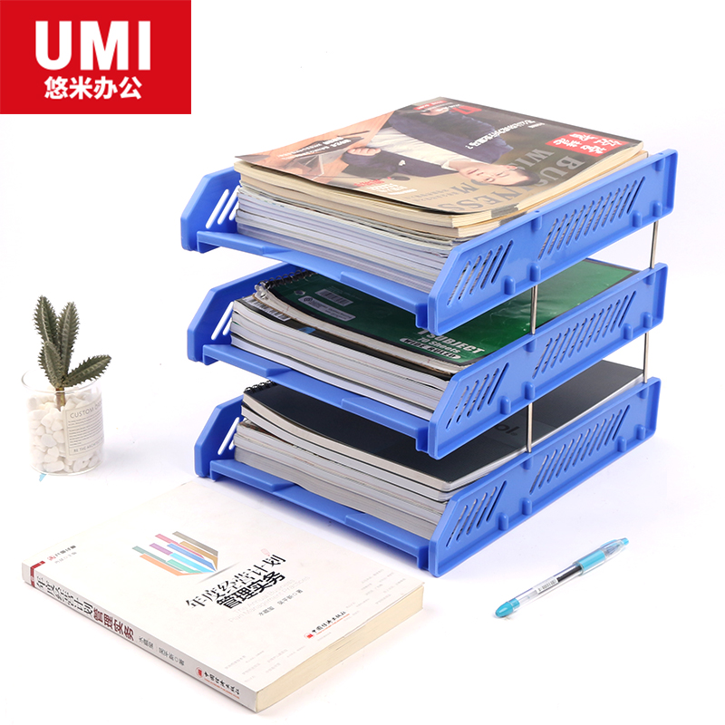 Yomi a4 Three-layer file rack Data rack file disk file holder Plastic three-layer file storage rack File data file Multi-function tray file bag folder storage box Desktop stationery