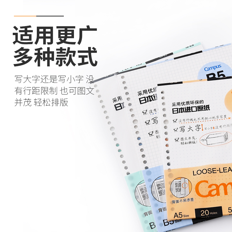 KOKUYO loose-leaf edition substitute core paper English checkered notebook note 26 holes 20 holes inner core A5B5 stationery this removable coil wrong question blank replaceable core