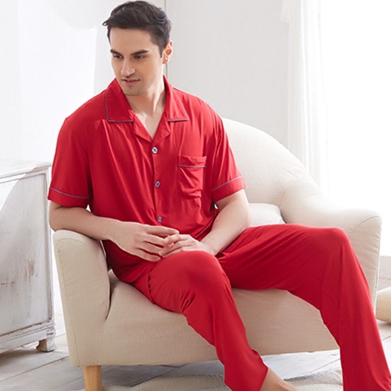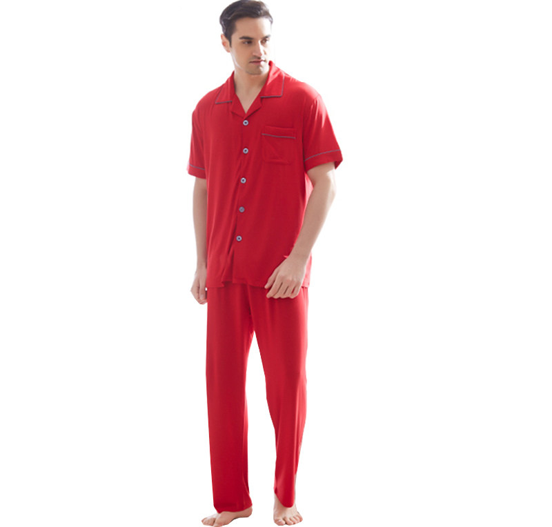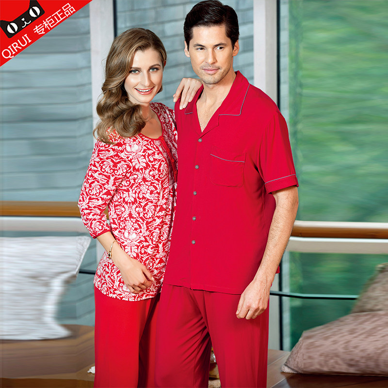 Very Spring and Summer New Couple Modale Household Short Sleeve Trousers The Dayu Red Men and Ladies Pajamas Set