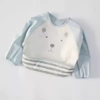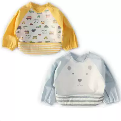Japanese baby waterproof anti-dressing food bib Cotton long-sleeved hood bib Children's non-food bib eating pocket