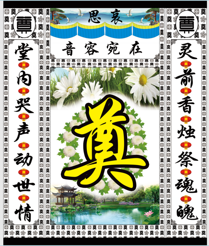 Funeral supplies HD spiritual hall fabric colored spiritual hall fabric for the Lianhall design of the Eight Fairy Hall fabric