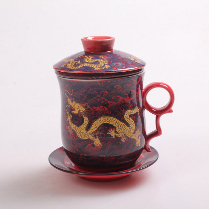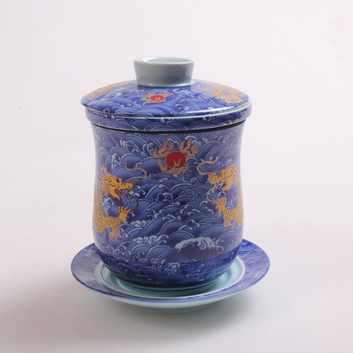 Ceramic Tea Cup Ceramic Personal Cup Office Tea Set Set Ceramic Tea Sea Tea Cup Gold Dragon Wave Four-piece Set