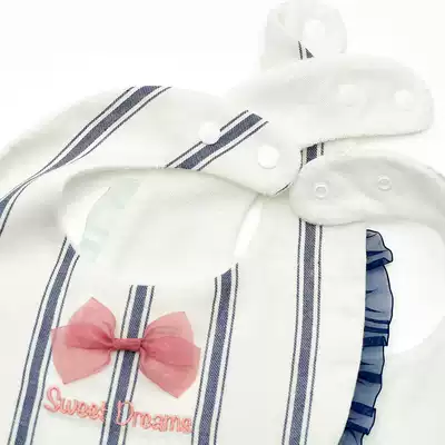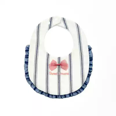 Fresh striped cotton-dyed cute bow pleated lace children's bib