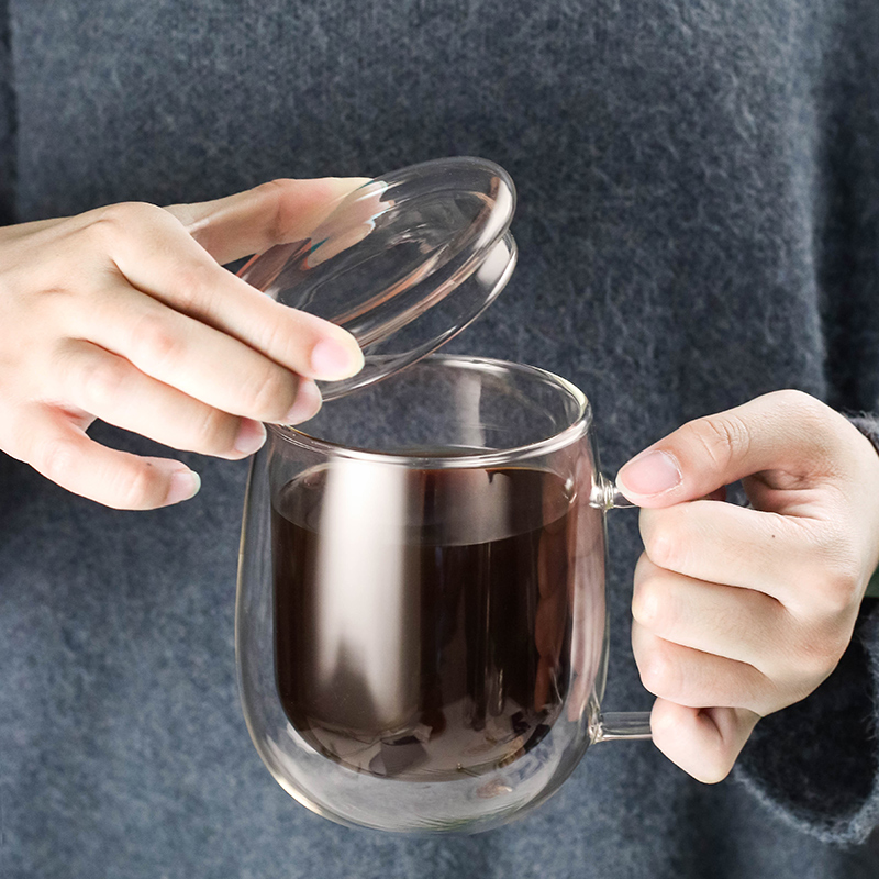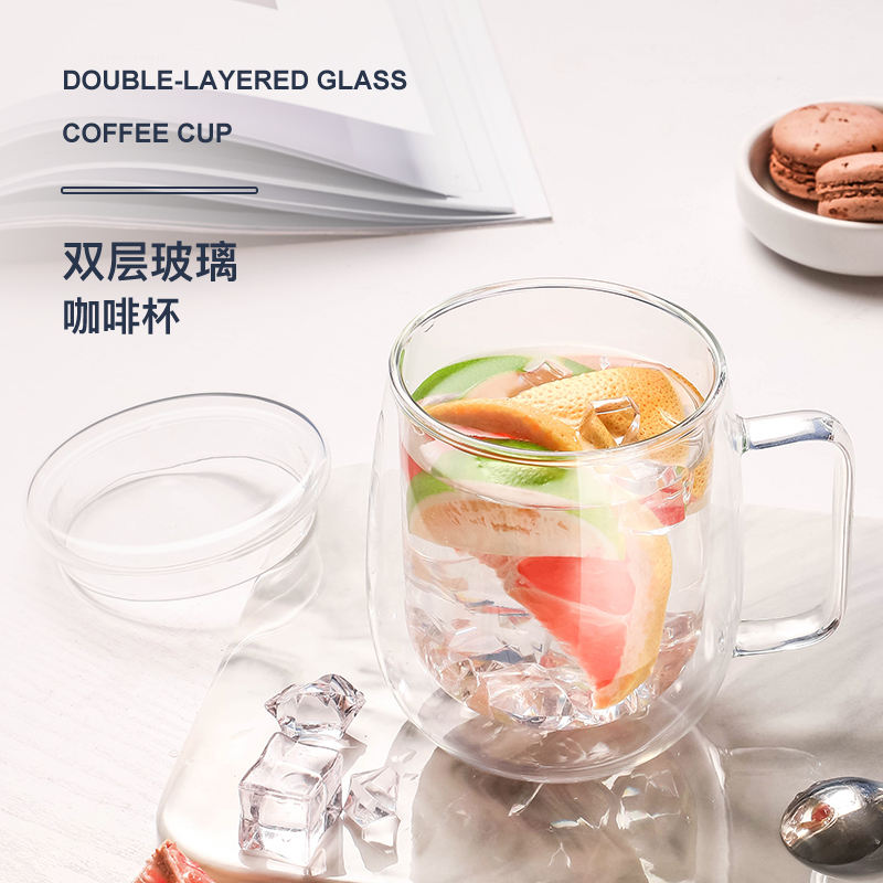 Double layer transparent thermal insulation thickened glass transparent water glass office Brief frescoes frescoed coffee cup children home