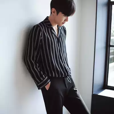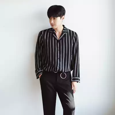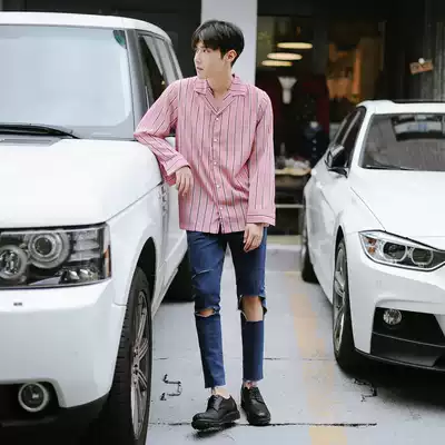 Autumn men's striped shirt men's long sleeve loose Korean trend Japanese fashion youth simple iron-free shirt