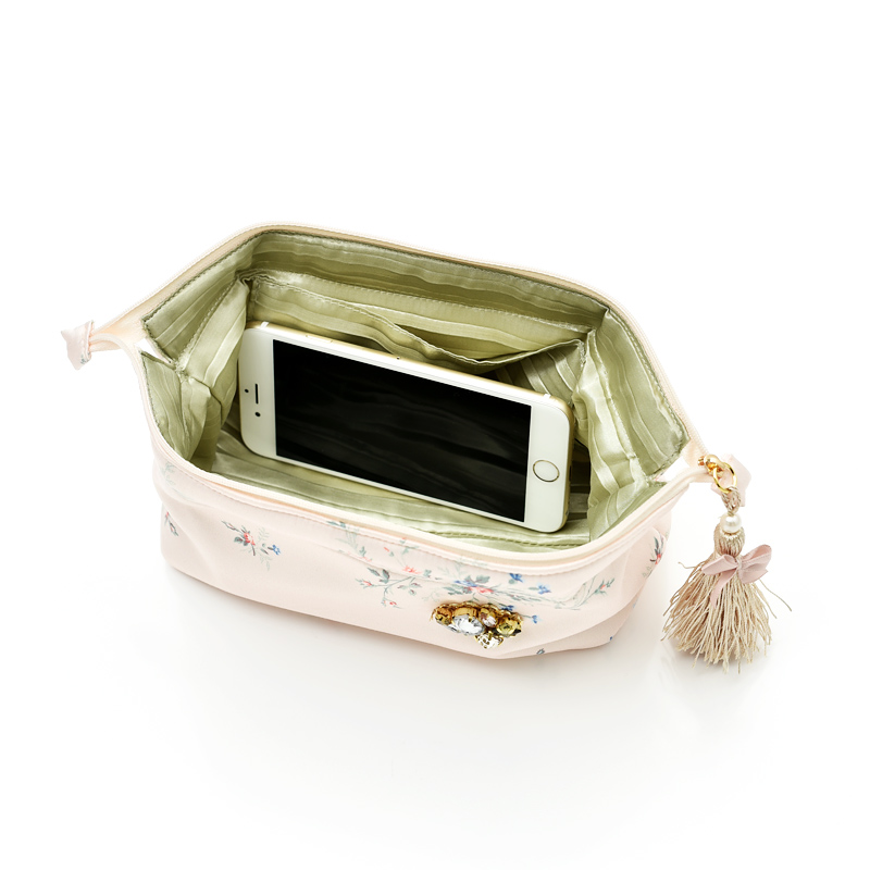 Fresh and elegant with a satin face butterfly knots water drill with a make-up containing bag