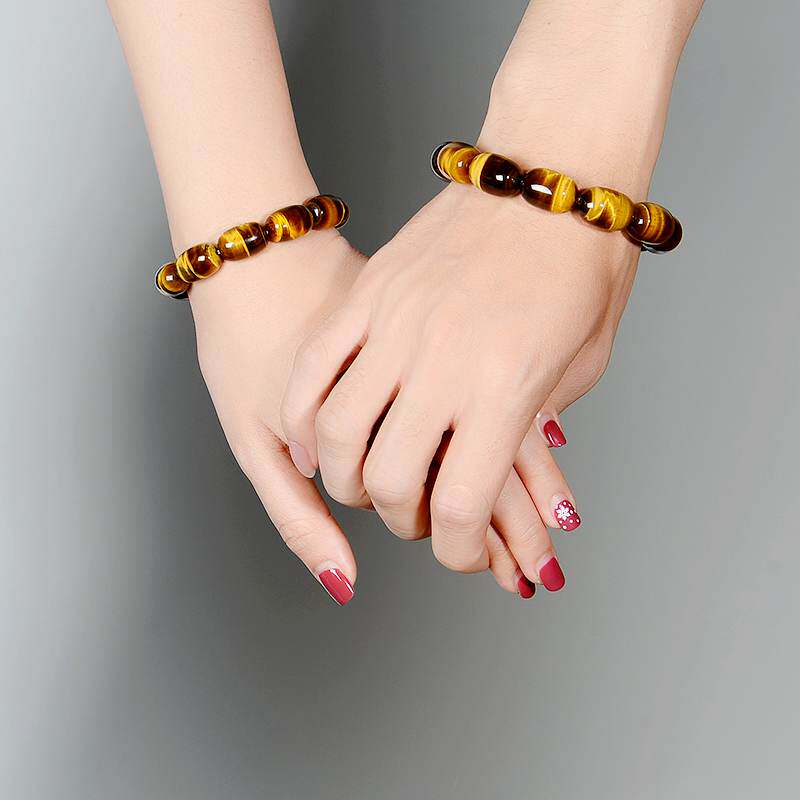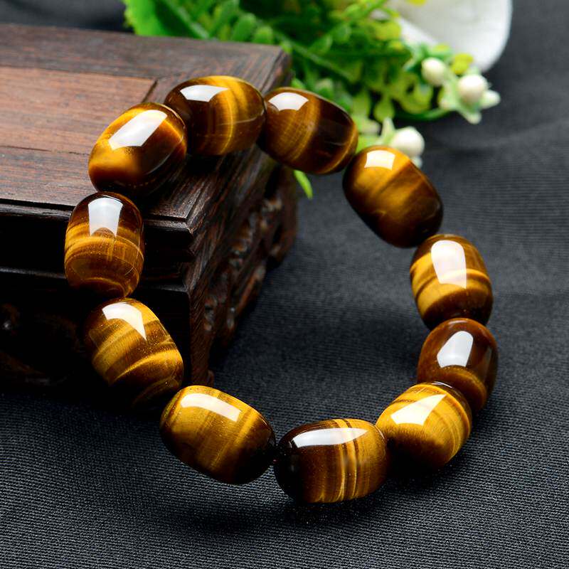 Natural Tiger Eye Stone Hand-held Female Bucket Beads Tiger Clear Stone Wooden Stone Crystal Hand String Male Couple Personality Hand Jewelry