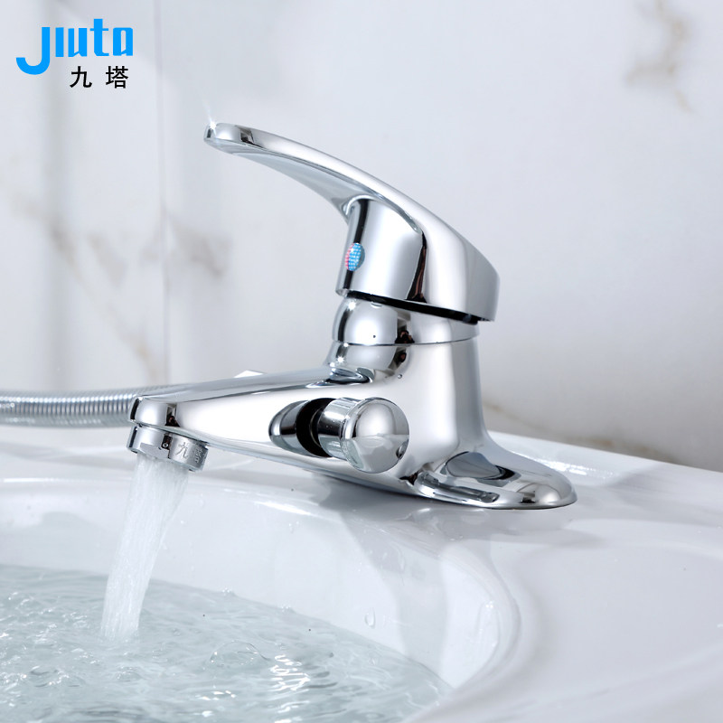 Full copper surface basin hot and cold face basin tap Terra basin ceramic basin single to wash the double-hole three-hole dressing room washbasin tap