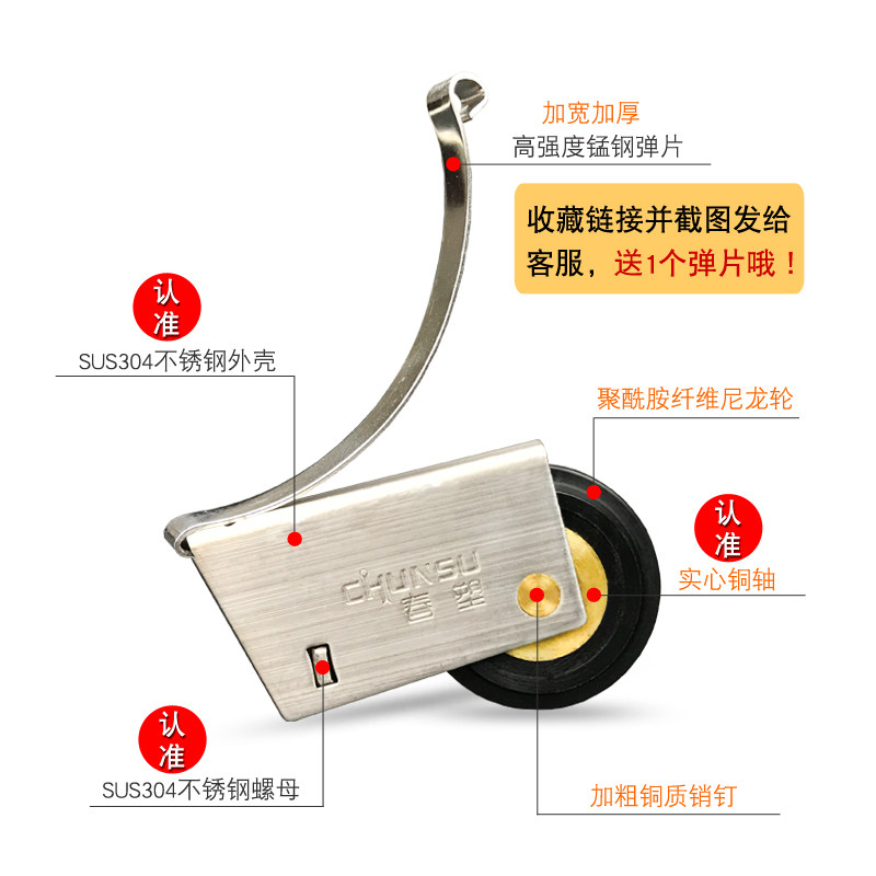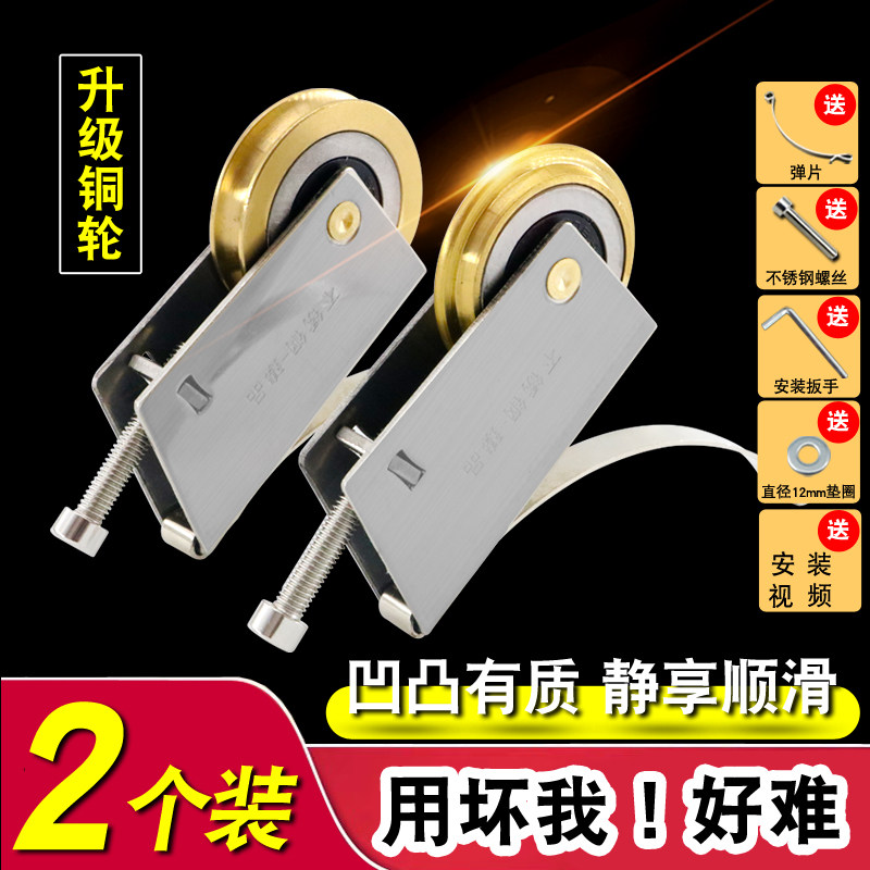 Spring plastic 304 stainless steel wardrobe door pulley overall cabinet door balcony titanium alloy partition push-pull sliding door copper wheel hanging slide