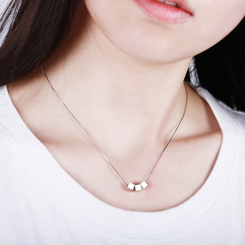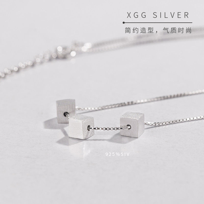 Girls Necklace Brushed Square Korean Version Simple Mori Korean Student Fresh Sterling Silver Clavicle Chain All-match Jewelry