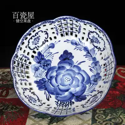 Modern Chinese retro ceramic candy fruit plate creative Chinese style home living room coffee table simple ornaments fruit Basin