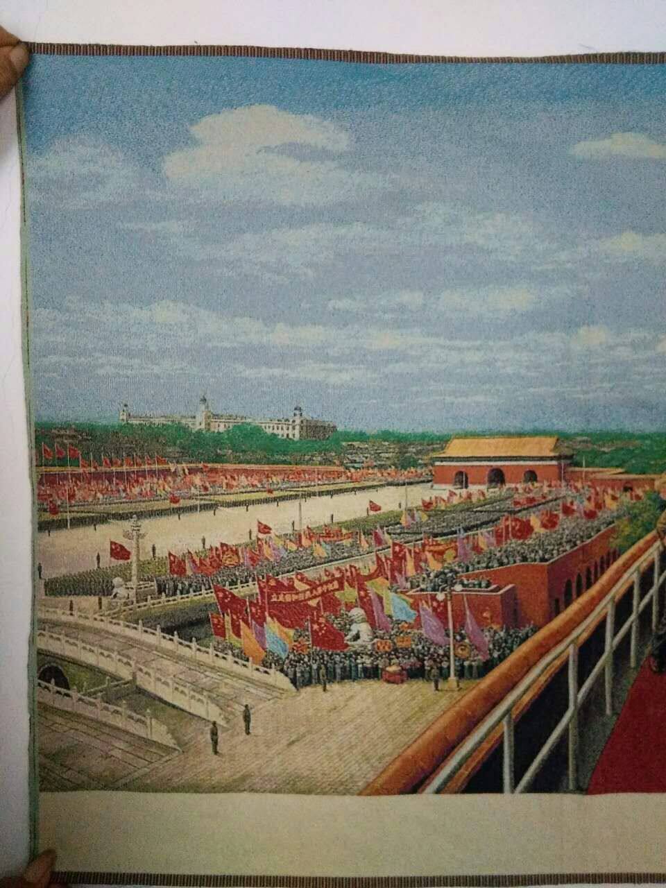 Antique Wenwan Red Collection Oriental Red Silk Weaving Factory's Founding Ceremony Silk Paintings Brocade Rust Antiques