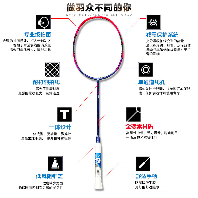 Moisturizing Badminton Racket double slapping adult male and female offensive resistant suit ultralight carbon children student plums