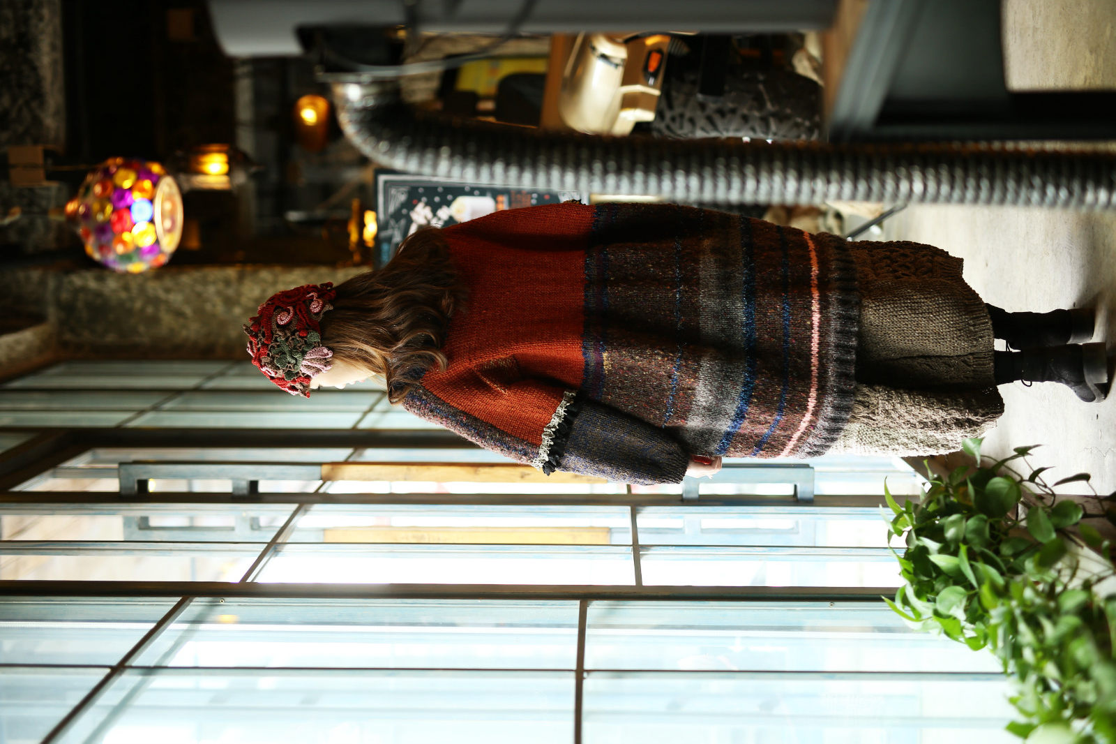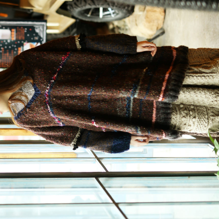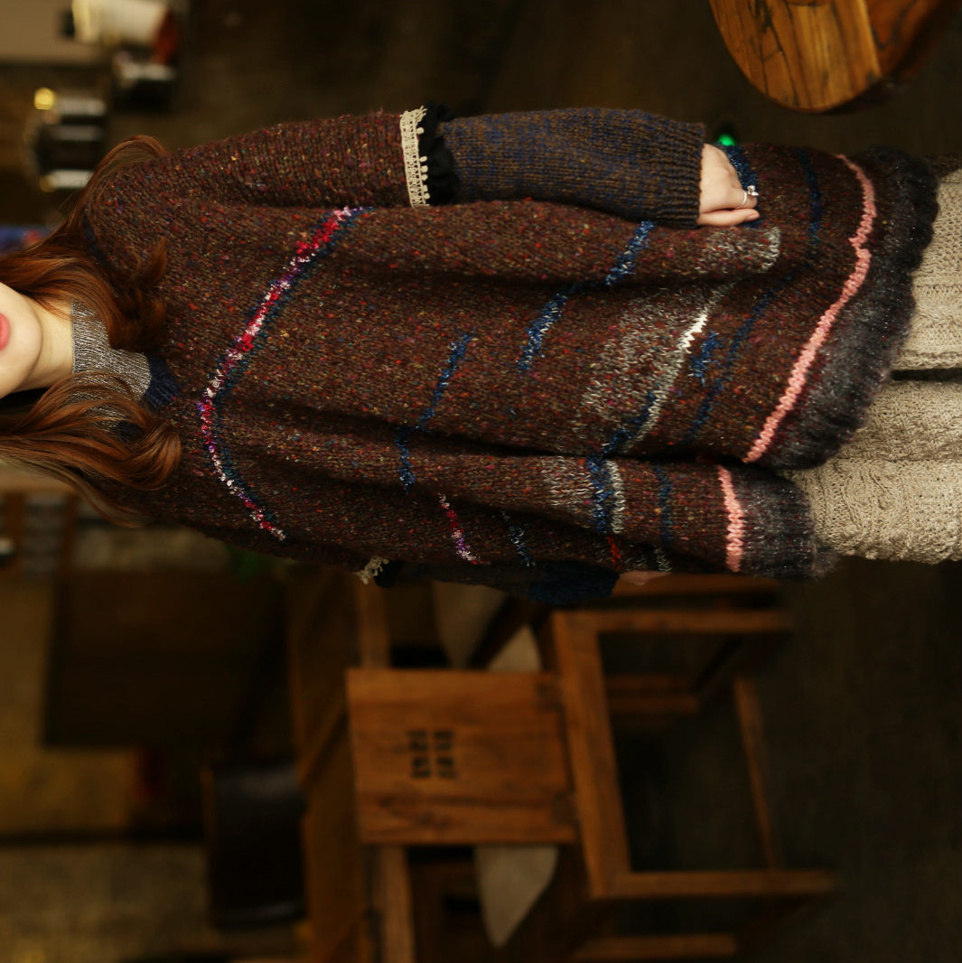 Gift of love ~ Original pure handmade knitted imported Colour wool line Art Fan retro Loose Dress