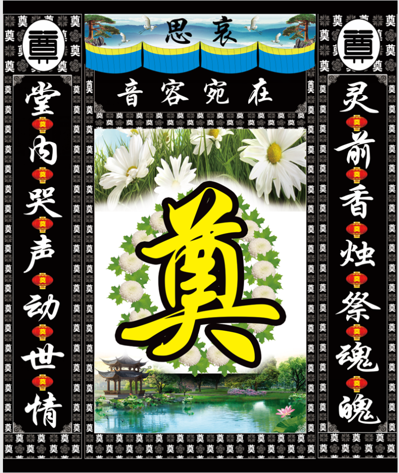 High-definition Lingtang cloth Painted Lingtang decoration Lingtang cloth couplet White funeral couplet tie-tie Funeral supplies